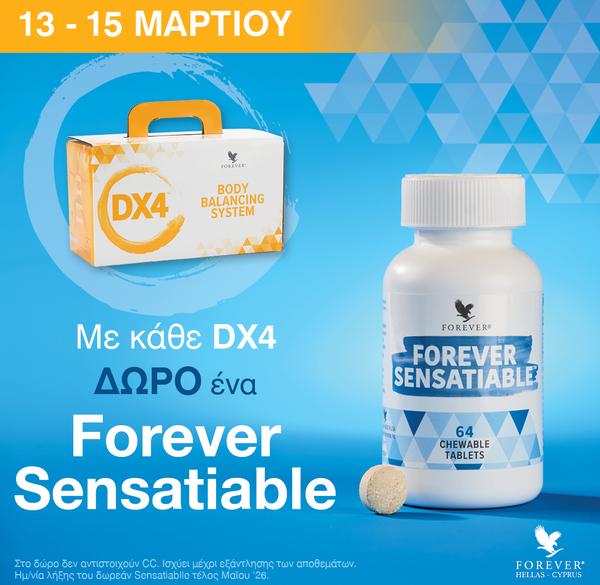 Ξεκινήστε το ταξίδι ευεξίας σας με το Forever’s DX4™, ένα πρόγραμμα 4 ημερών που σας βοηθά να επαναφέρετε το σώμα και το μυαλό σας με καθοδηγούμενη διατροφή και 6 καινοτόμα νέα προϊόντα που διατίθενται μόνο στο DX4 μαζί με το κλασικό μας Forever Aloe Vera Gel για να σας προσφέρει τη συμπληρωματική υποστήριξη που χρειάζεστε περιορίζοντας ταυτόχρονα την πρόσληψη θερμίδων και επιτυγχάνοντας τους στόχους σας.